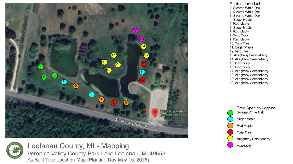 In this planting ReLeaf Michigan, Leelanau County, the Leelanau Conservation District, and the DTE Energy Foundation planted 20 trees at Veronica Valley County Park in Lake Leelanau on Friday, May 16th. These trees are a part of an effort to turn an old golf course into a natural space and increase species and age diversity with native trees.
