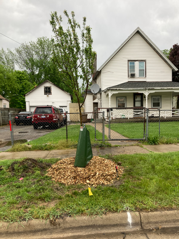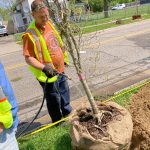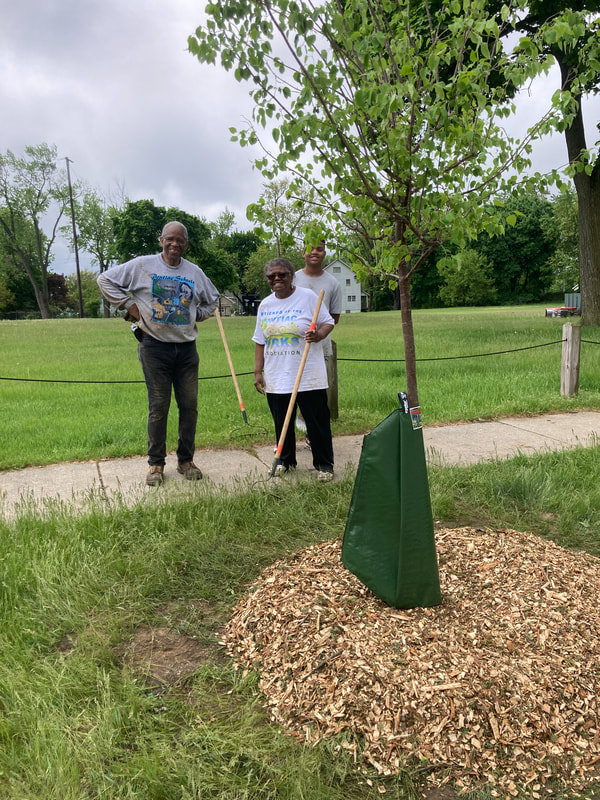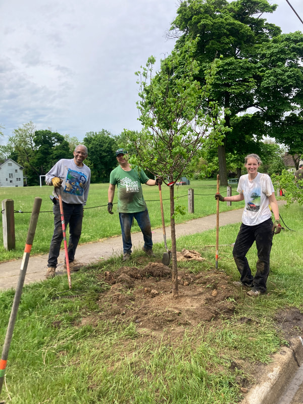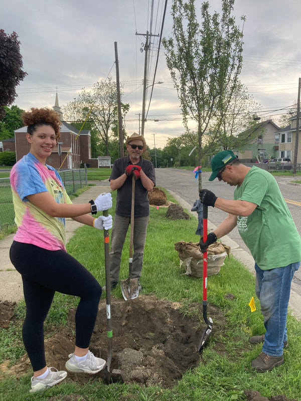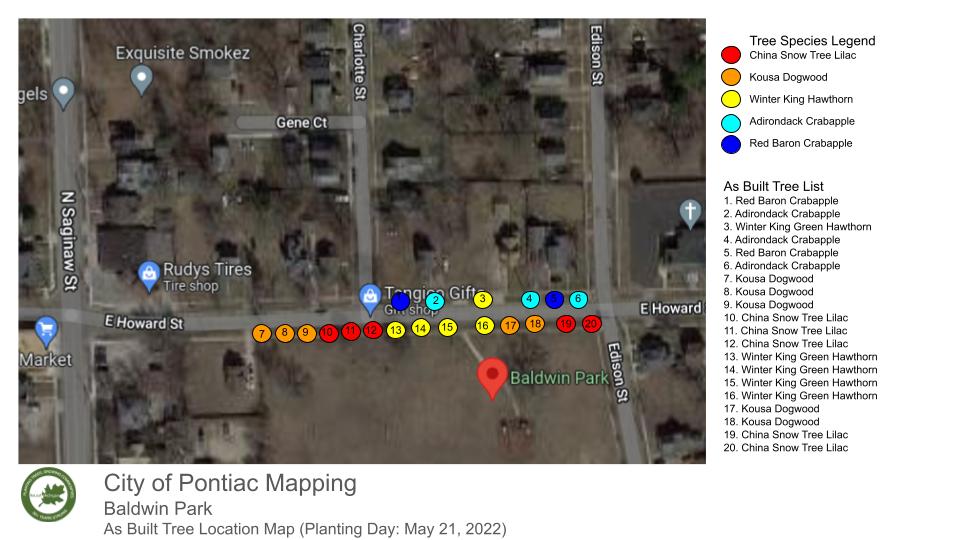 In this planting ReLeaf Michigan, DTE Energy Foundation, Friends of the Pontiac Parks Association, city of Pontiac, Pontiac Community Foundation, and volunteers planted 20 trees at Baldwin Park on Saturday, May 21, 2022. These trees will increase the overall canopy of the city! The purpose of this planting is to provide shade and aesthetic improvement around the park! Trees were planted on E. Howard St. at Baldwin Park, between Edison St. and Charlotte St. Trees were planted on both sides of the street.