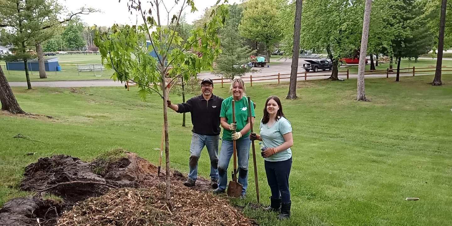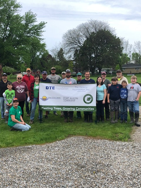 In this planting ReLeaf Michigan, DTE Energy Foundation, The Glancy Foundation, the Village of Port Austin, Port Austin Township, and volunteers planted 20 trees at Butterfly House and Gallup Park on Saturday, May 21st, 2022. The goals of trees at Gallup park was to replace some that had been ripped away by a tornado in Just 2021. The Butterfly House is a new park in need of an overall tree canopy which will provide a multitude of environmental, health, economic and aesthetic benefits. There was also one tree planted in front of city hall as a replacement to one that had fallen.