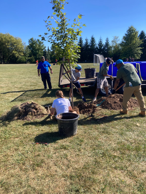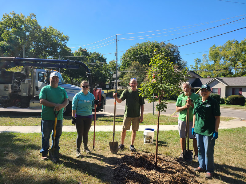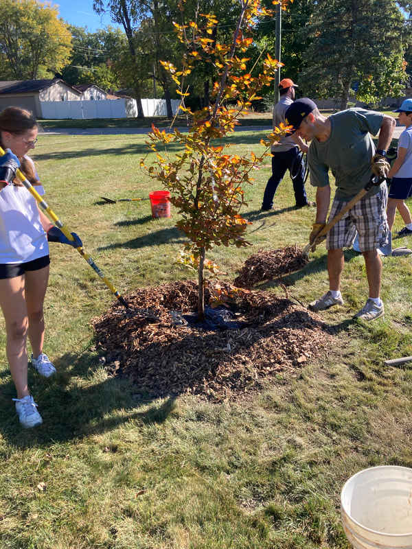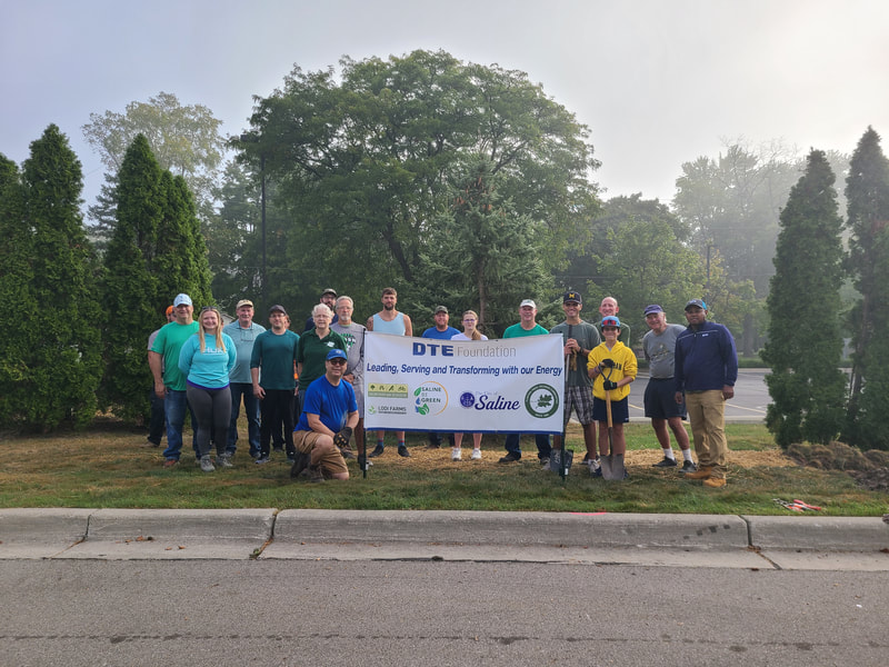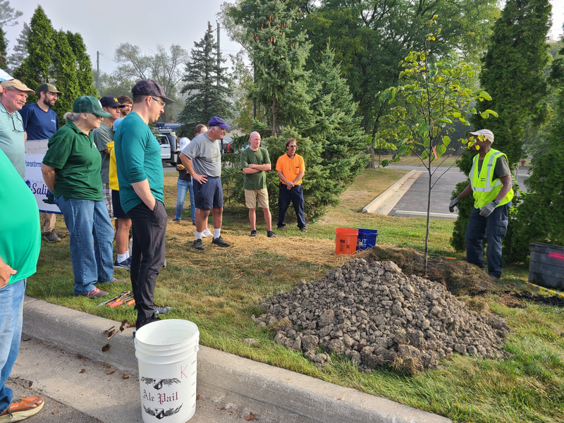 In this planting ReLeaf Michigan, DTE Energy Foundation, the city of Saline, the Saline Parks and Rec Department, the Saline Department of Public Works, and volunteers planted 20 trees at Saline City Hall, Tefft and Risdon Parks, and the Castlebury and Pembroke neighborhoods on Saturday, September 21st. The trees were planted to fill open space at city hall, the parks and the neighborhoods, and will provide shade and diversify the tree canopy.