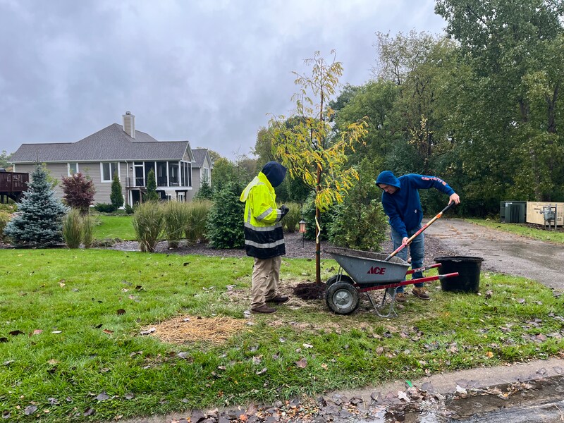 In this planting ReLeaf Michigan, DTE Energy Foundation, Clearwater Township, Rapid City Elementary School, the SEEDS program, Pleasant Valley Custom Homes,​ and volunteers planted 20 trees at Rapid City Elementary School and Heritage Park in Rapid City on Saturday, October 14th. The trees were planted to increase the tree canopy and provide shade for recreation at the elementary school.