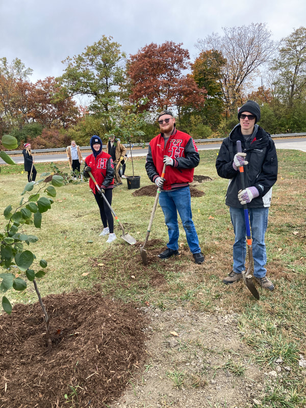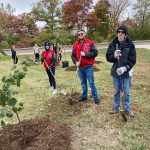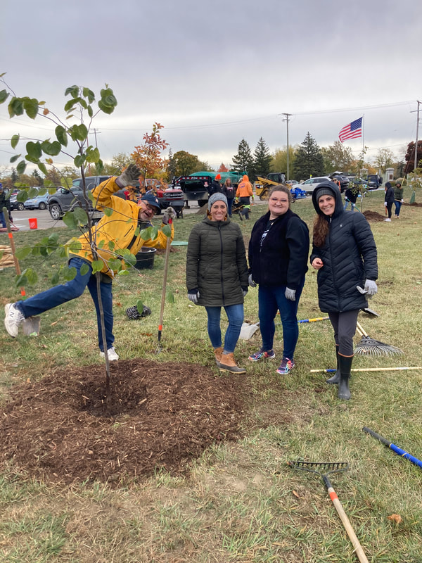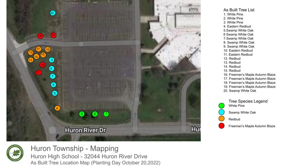 In this planting ReLeaf Michigan, DTE Energy Foundation, Huron Township Rotary, Corby Energy Services, Huron School District, and volunteers planted 20 trees at Huron High School on Thursday, October 20th, 2022. The goal of this planting was to enhance the school grounds and increase the overall tree canopy. Trees provide many environmental, health, economic and aesthetic benefits.