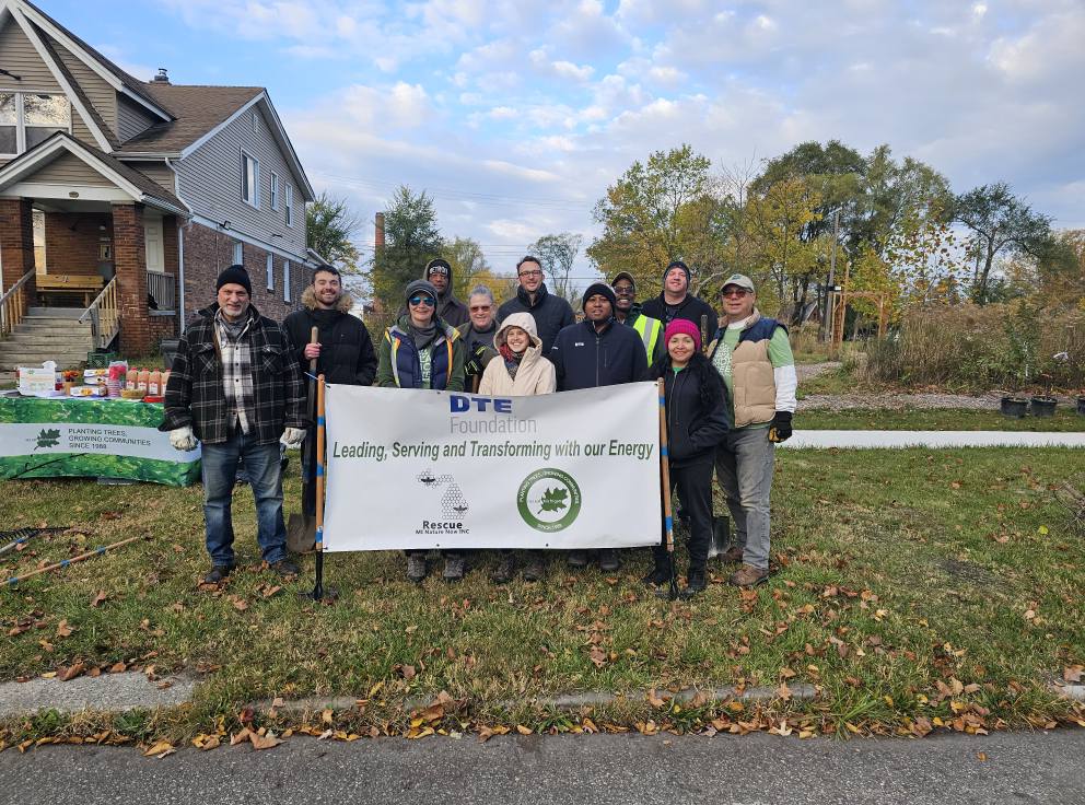In this planting, ReLeaf Michigan, the DTE Energy Foundation, Rescue MI Nature NOW, and volunteers planted 20 trees in Highland Park on Saturday, November 1st. The trees planted are helping to reestablish a healthy tree canopy, increase shade, reduce neighborhood blight, and support local resilience by including shade and edible fruiting tree species.